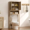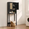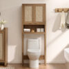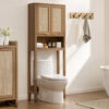 Transforme seu banheiro com elegância e praticidade usando o Armário Organizador Sobre o Vaso Sanitário com Design em Rattan — a solução perfeita para quem deseja aproveitar cada centímetro do ambiente com muito estilo.