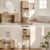 Conta com prateleira ajustável, permitindo organizar diferentes tipos de itens com total flexibilidade — desde toalhas e papel higiênico até produtos de higiene e limpeza.