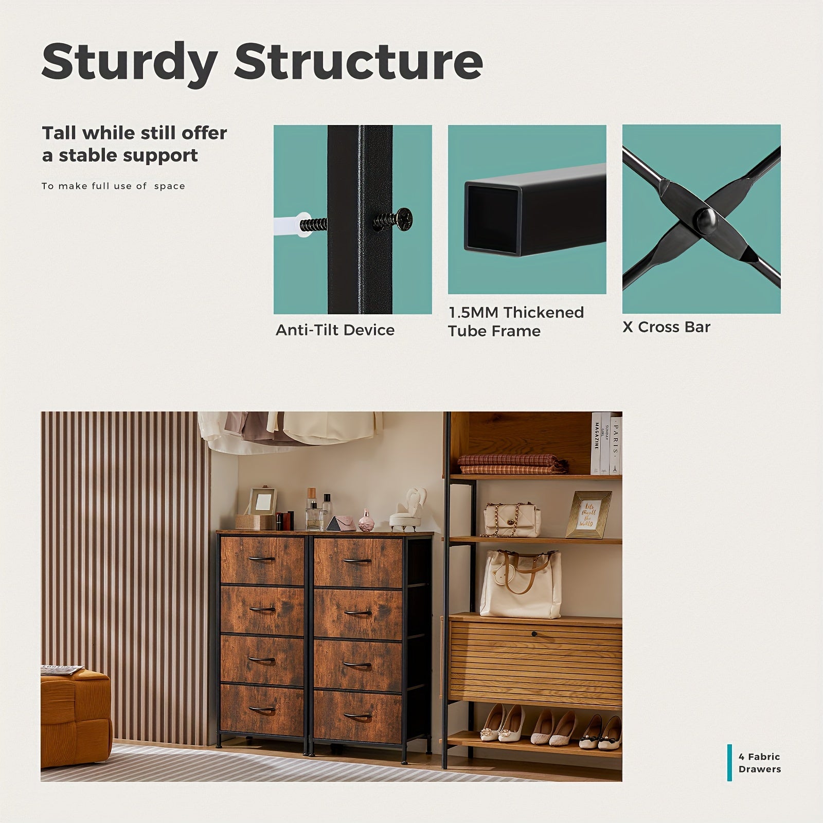 4 Gavetas Espaçosas em Tecido: Permitem armazenar roupas, acessórios, documentos e outros itens com praticidade.