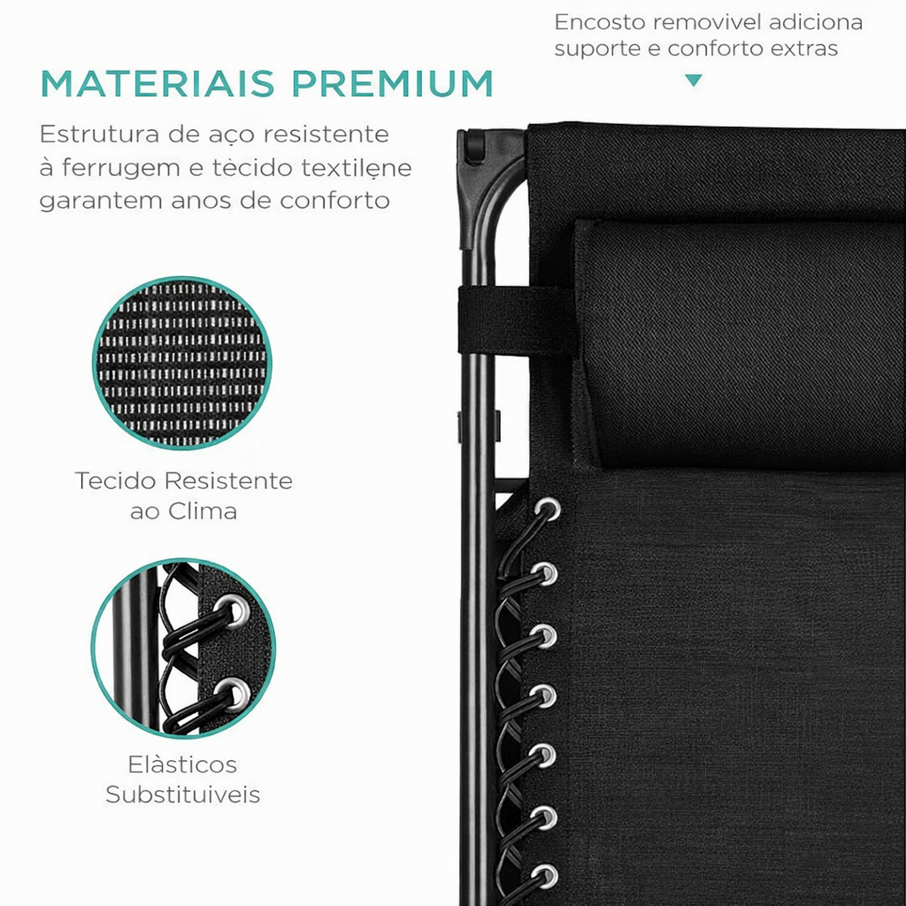 Seu design ergonômico permite alcançar a posição de gravidade zero, ideal para relaxar em seu pátio, área externa ou praia.