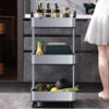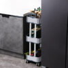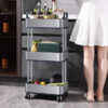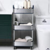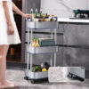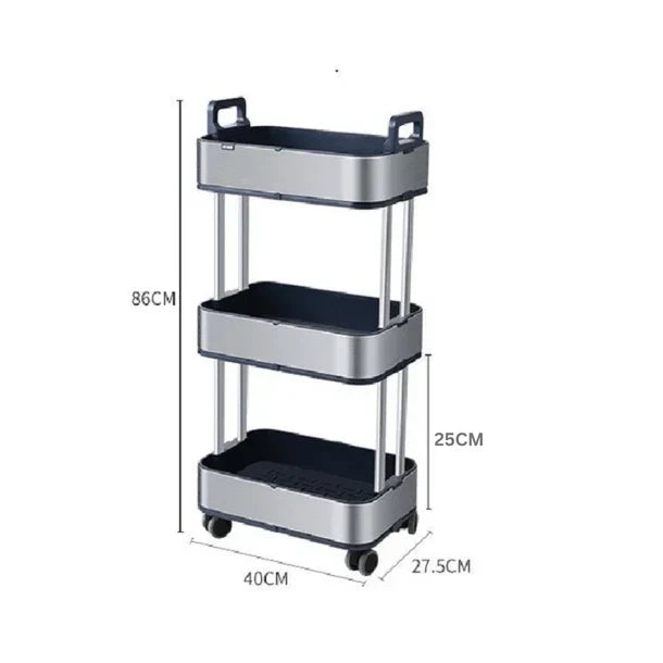 O pacote inclui: 1 carrinho de armazenamento fino de 3 níveis em aço inoxidável com rodas.