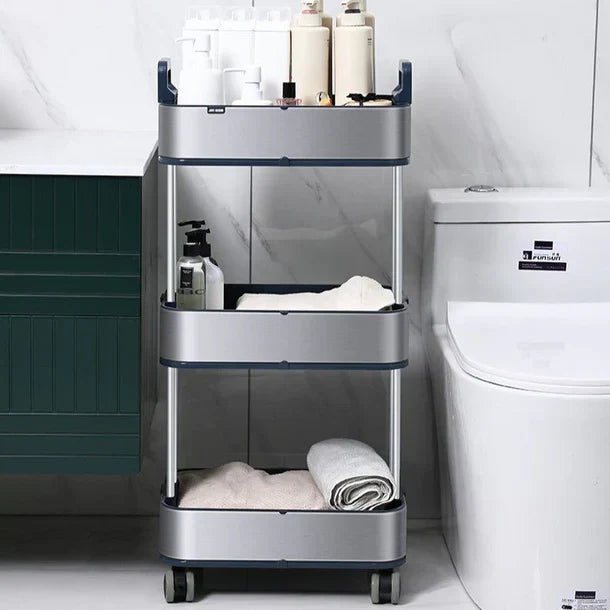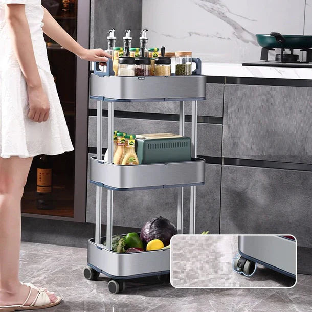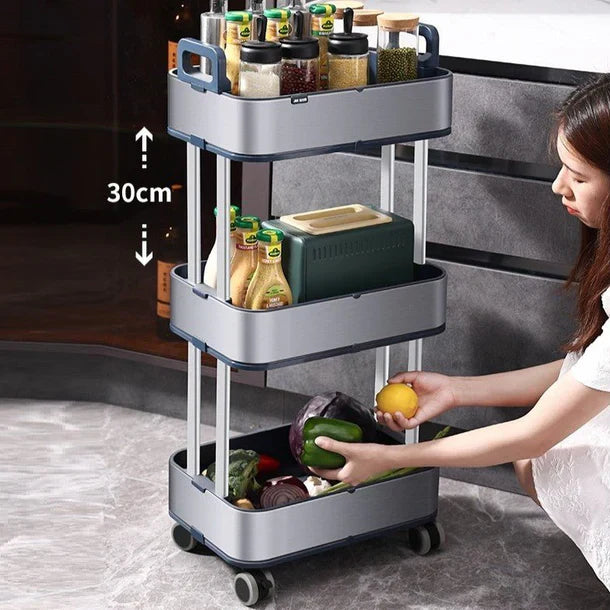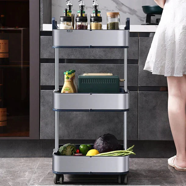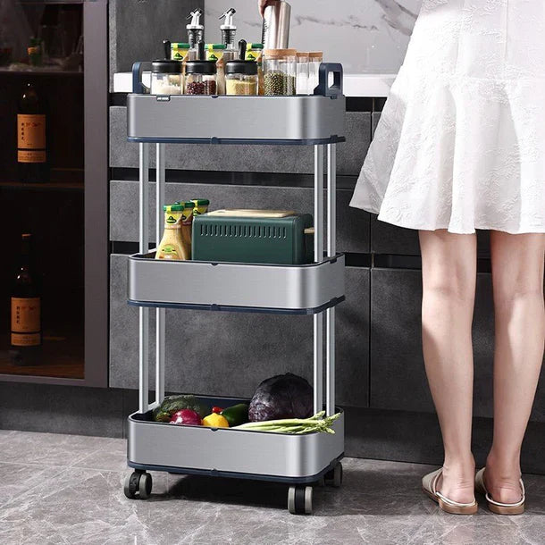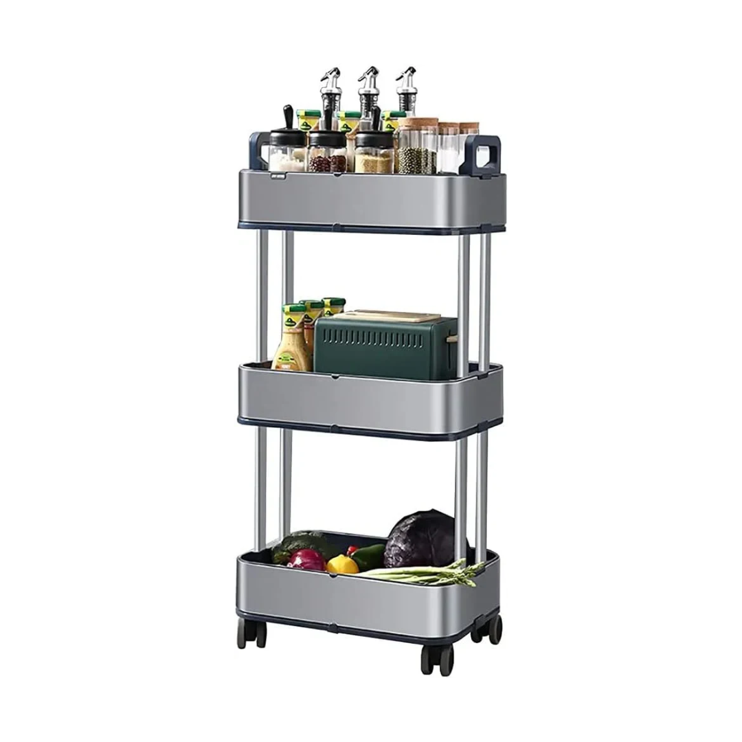 Maximize o espaço de armazenamento na sua cozinha, banheiro ou apartamento pequeno com este carrinho de aço inoxidável de 3 níveis, elegante e durável. Projetado com foco em mobilidade e otimização de espaço, este carrinho possui rodas de borracha silenciosas, espaçamento ajustável entre os níveis e alças fáceis de segurar para um transporte suave. Ideal para armazenar vegetais, condimentos e itens essenciais do dia a dia, ele combina funcionalidade com um design minimalista. Seja encaixado em um canto ou deslizado entre espaços apertados, este carrinho móvel mantém sua casa organizada e arrumada com estilo e praticidade.