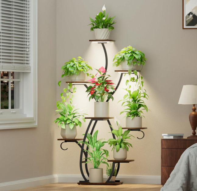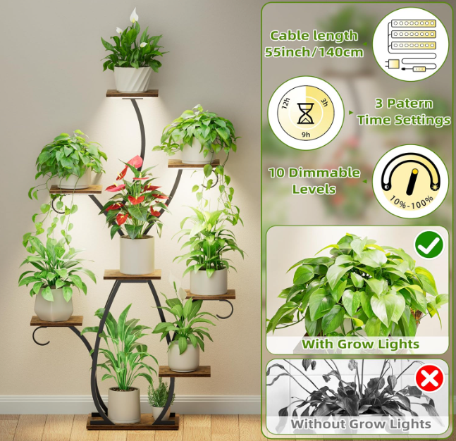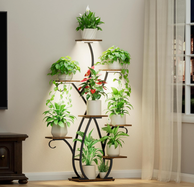 Each shelf is subtly lit to spotlight your plants, turning them into living decor. With its solid wood tones, matte steel structure, and vertical grace, Zenith is more than a stand — it’s a thoughtful curation of form, function, and botanical beauty.